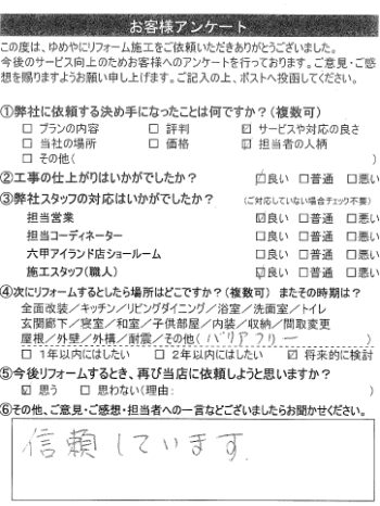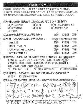ゆめやでは、リフォーム工事が無事に終わると、お客様にアンケートのご協力をお願いしております。