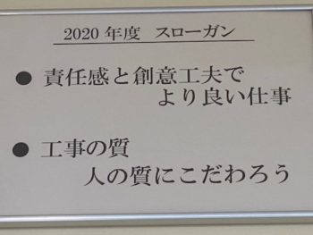 | ゆめや新年恒例! 今年のスローガンが決定しました😊 全社員、ひとり二つずつの案を提出し、作成者の名前は伏せてみんなで投票します! 2020年度のスローガンは、 【責任感と創意工夫でよりよい仕事】に決定です✨✨ 【工事の質 人の質にこだわろう】←このスローガンは昨年に引き続き継続です! 毎朝、六甲アイランドショールーム、御影事務所、それぞれの場所で朝礼時に唱和しています。 せっかくのスローガンも唱和するだけでは意味がありません。 唱和することで、仕事に入る前に今一度、この言葉の持つ意味を考え、今日も一日頑張ろうという気持ちになります。 言霊という言葉があるように、言葉として口から発することにより、その言葉の持つ意味、重みを感じます。 今年もお客様に愛されるゆめやでいられるよう、ゆめやらしいデザイン性を持ったご提案をさせて頂けるように頑張ってまいります!! |