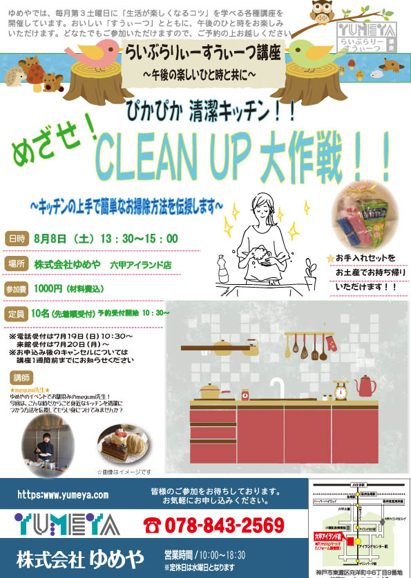 【らいぶらりー・すうぃーつ講座】めざせ!ピカピカ清潔キッチン!!CLEAN UP大作戦!!(終了しました)