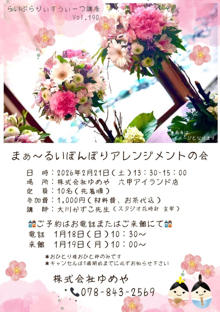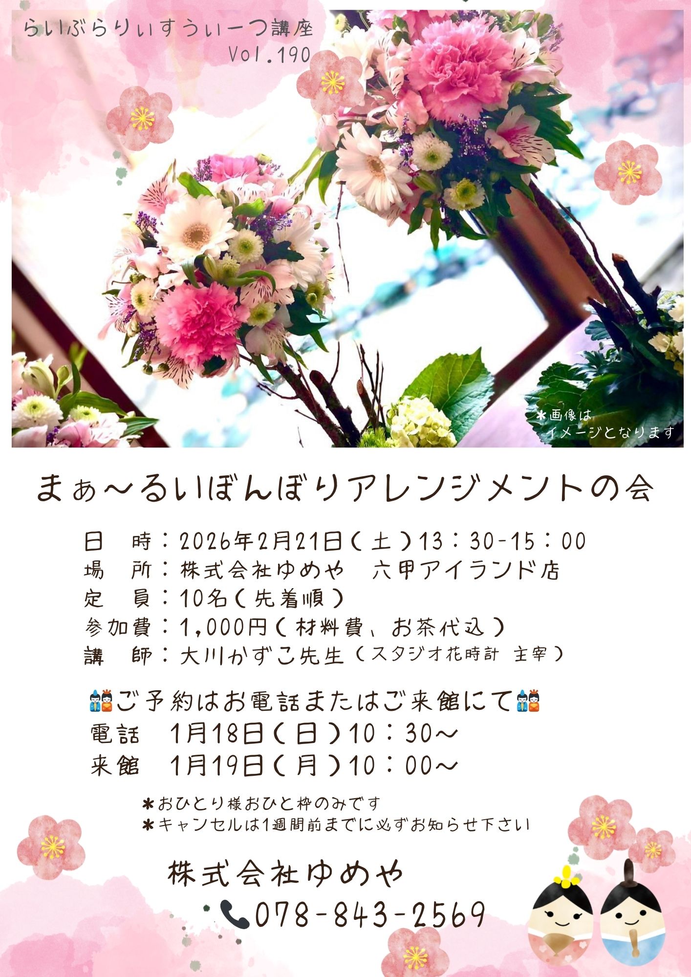 【2026年2月 らいぶらりー・すうぃーつ講座】まぁ~るいぼんぼりアレンジメントの会