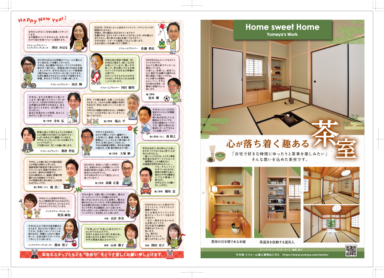 資料請求 無料相談 HOME季刊誌Cocoticocoti vol.32 cocoti vol.32 cocoti vol.32 20200108折込 季刊誌Cocoti一覧はこちら ゆめやについて 会社案内代表挨拶会社概要ゆめやの誓い施工エリア 選ばれる理由 スタッフ紹介 採用情報 施工事例 施工事例一覧 寝室 戸建て マンション LDK 和室 茶室 断熱 性能向上 大規模 受賞作品 その他部位別 玄関 収納 キッチン お風呂 洗面所 トイレ 外壁・屋根 エクステリア お客様の声 お客様の声一覧 お役立ち情報 性能向上リフォームについて 茶室リフォームについて ショールーム ゆめやの仮住まい イベント・チラシ情報 季刊誌Cocoti リフォームかし保険 リノベーションの流れ ブログ 採用情報 住宅省エネ2025キャンペーン 先進的窓リノベ2025事業 子育てグリーン住宅支援事業 給湯省エネ2025事業 お問い合わせ お問い合わせ 資料請求