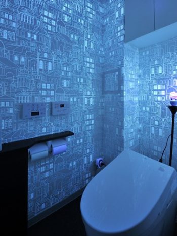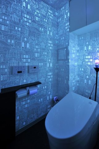 【トイレ】ブラックライトと光のイルミネーション壁紙により、トイレが幻想的な空間に。