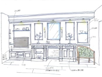 【リビング】ご提案する際のイメージをスケッチして見せることで、よりお施主様のご希望のイメージに近づくことができました。