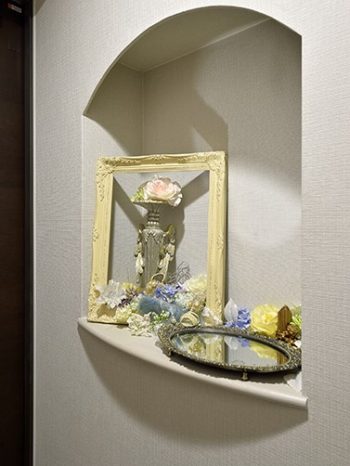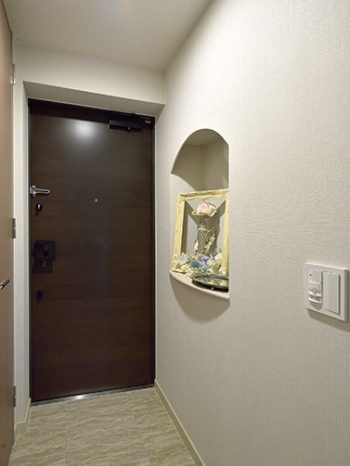 【玄関】新たに作ったニッチ部は、アールで柔らかさを演出。