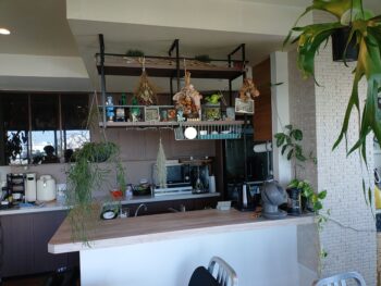 | お客様のご要望 | ・料理中も食事中も景色を眺めることが出来るキッチンにしたい ・友人を招いて食事会をよくするので、最大8人が座れるようにしたい ・モールテックスを使いたい ・コンロ前の壁を抜いて通り抜けれる様にして欲しい |