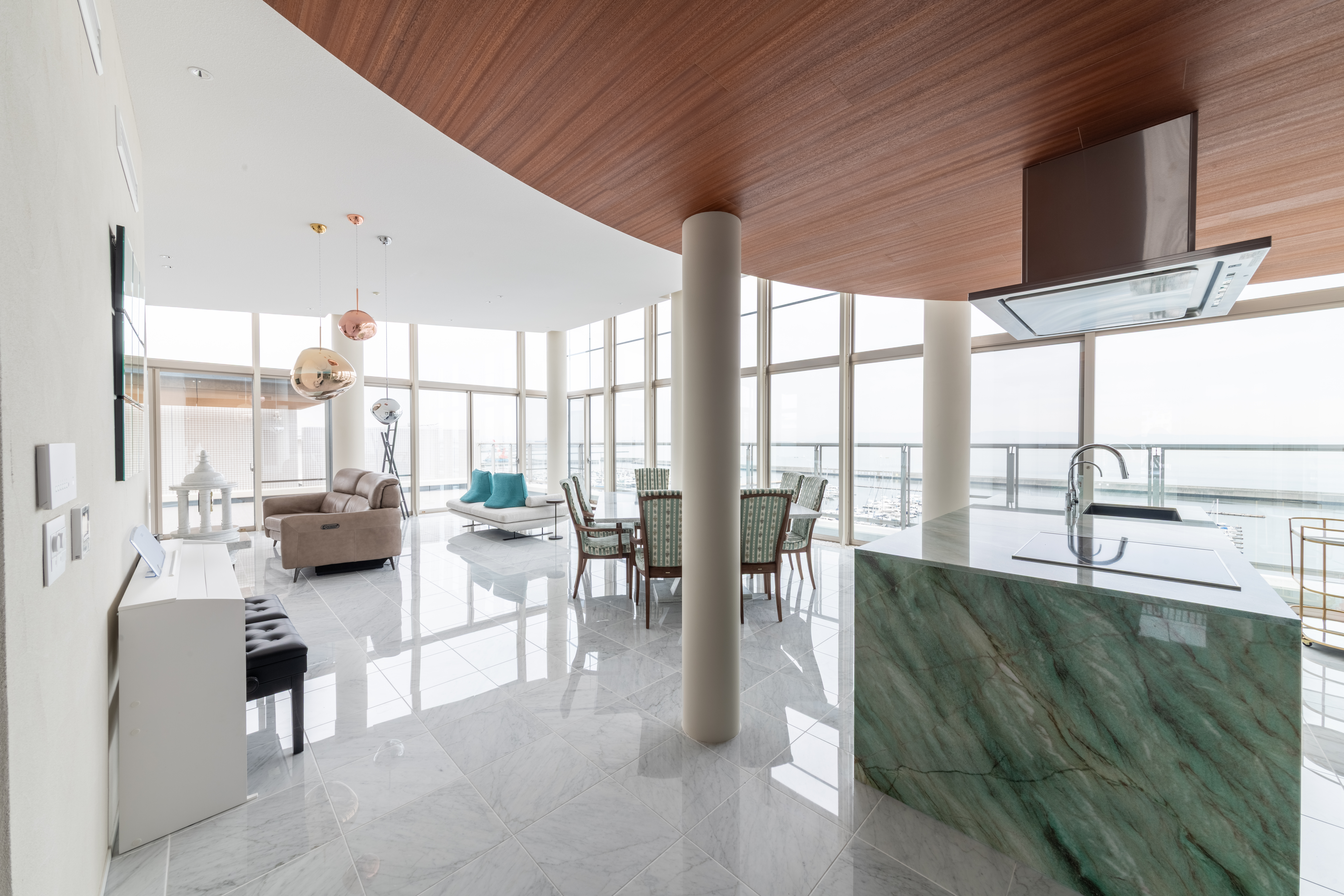 大開口から海と空を眺めることが出来る景色を最大限に楽めるように提案