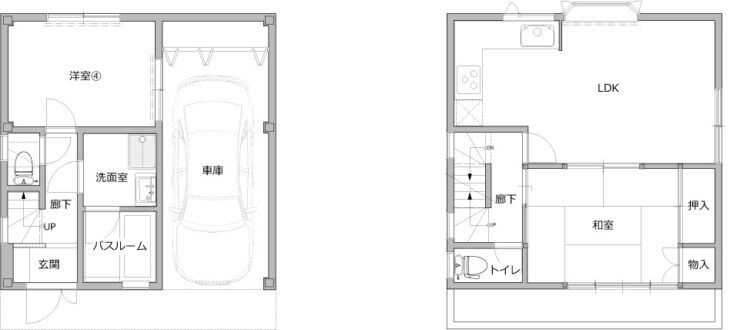 | プラン決定のポイント工夫 | ・レトロな小物やタイルを取り入れながら、これからのレトロを考えて既存のお客様の私物に合うようにそして部屋の良さを出すように提案していきました。 ・壁向きのキッチンをオープンキッチンでリビングに向く様に配置。にぎやかな楽しい時間が生まれるような形を提案しました。 ・1階の暗く狭い玄関は、すぐ隣にあった浴室を移設させて、広い土間に。土間の窓はお風呂の時に使用していた窓を利用。 |