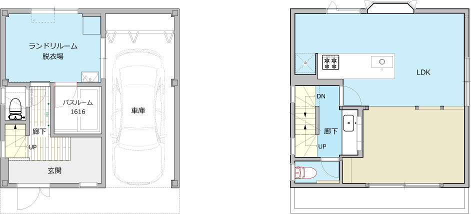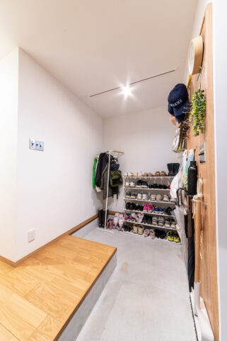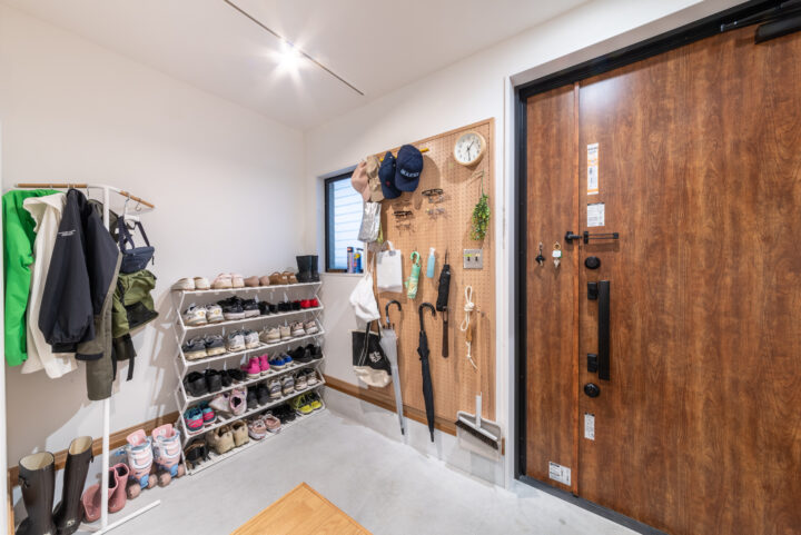 | お客様のご要望 | ・レトロな物が好きで、好きな物を集めた家にしたい。 ・キッチンを家の中心にしたい。 ・1階の暗く狭い玄関を広く明るくしたい。 |
