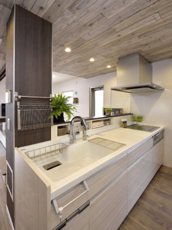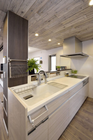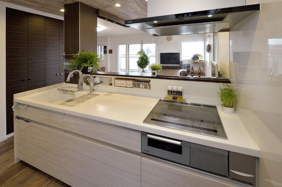 キッチンの背面収納もスッキリ。