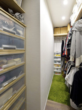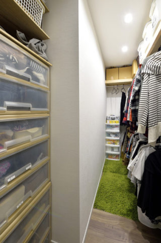洋室だったスペースを一部はキッチンに取り込み、残りをウォークインクローゼットへ変更。洋服も見やすく片付けやすくなりました。
