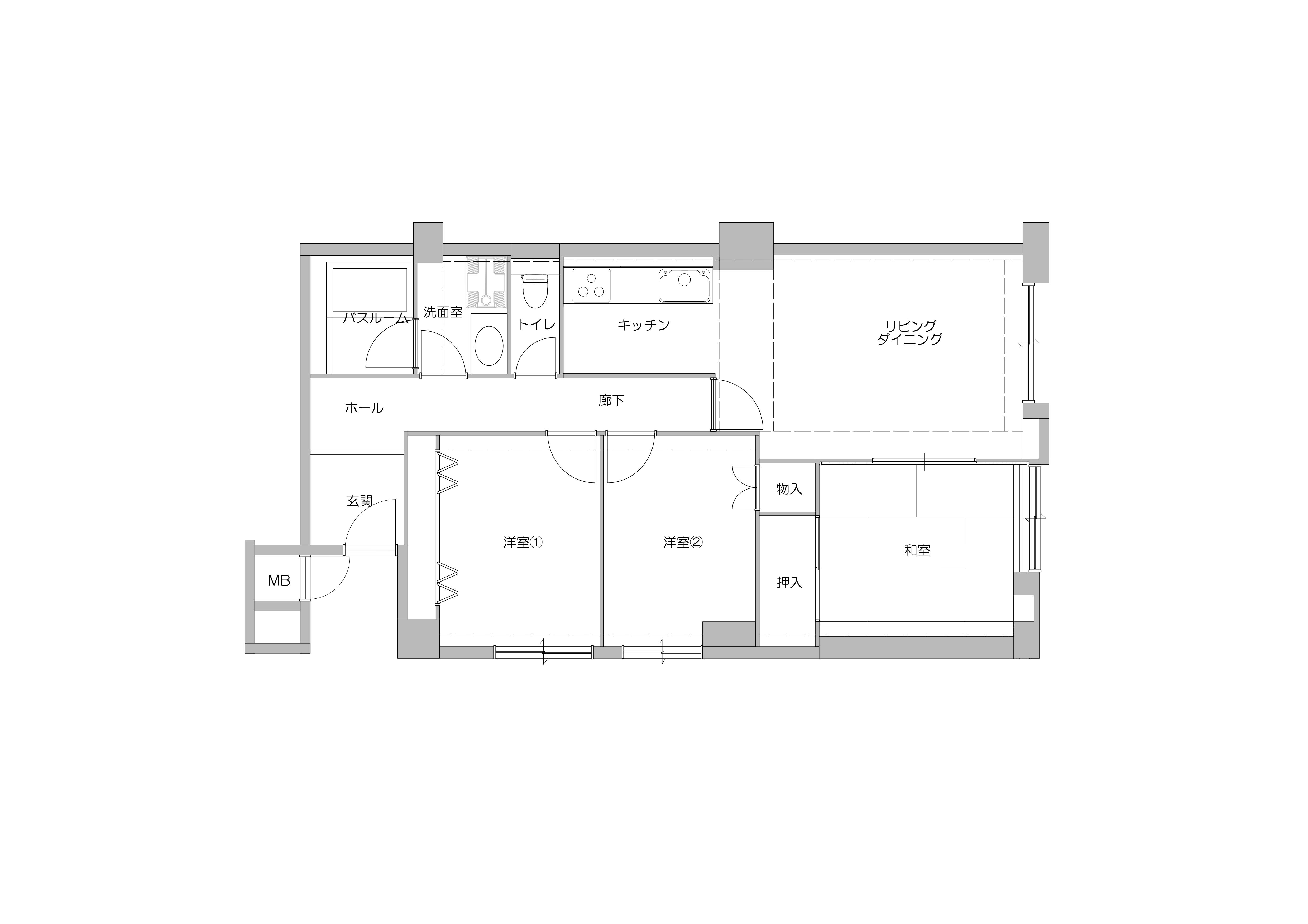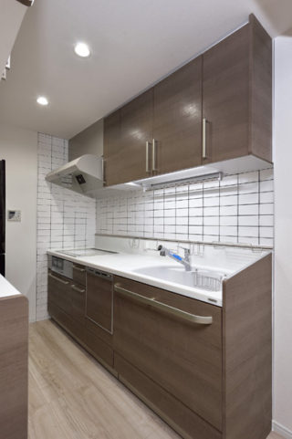 | 施工箇所 | 間取変更(和室を洋室に)、内装、建具取替、一部設備取替(キッチン、洗面台)、タイル工事 |