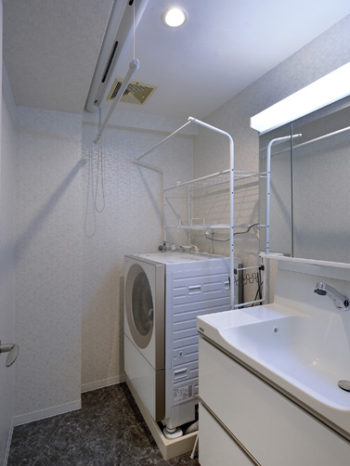 大容量の洗面台をお気に召され急遽取替に。沢山収納出来て大満足されてます。育ち盛りのお子様のお洗濯物が大変なので、室内干しが出来るようにしました。 洗面台:エポック/トクラス