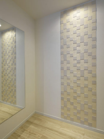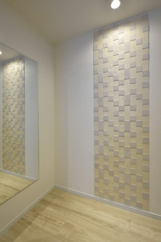 玄関から家に入ると、正面にアクセントのエコカラットを。