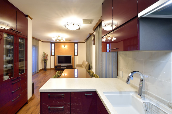 【キッチン】形はそのままに、ダイニング側の吊戸を撤去し開放的に。扉は奥様こだわりの塗装仕上げで品のある仕上がりのキッチンになりました。