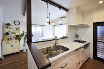 | プラン決定のポイント工夫 | 安全性と暮らしやすい間取り、動線を良くするためには、階段の架け替えが必須と考え、鉄骨の間を通すプランを検討しました。解体後の状態を見ながら対応できるよう設計段階で工夫することで、建物強度に問題なく階段の位置を変更することができました。 出入りのしやすい下の階にお父様と介護に対応できるよう施主様の部屋、上の階にはリビングとお子様の部屋を配置しました。 インテリアは奥様お好みのフレンチ・シック・スタイル。アンティーク風のくすんだ色やアイアンの小物、飾り梁を空間のスパイスに、ぬくもりのある住まいに生まれ変わりました。 |