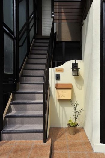 【エクステリア】玄関までのアプローチにはタイル、ぬくもりを感じさせるエクステリアに。また、これまでメンテナンスできていなかった外壁や屋上もこの機会に補修と塗り替えも。