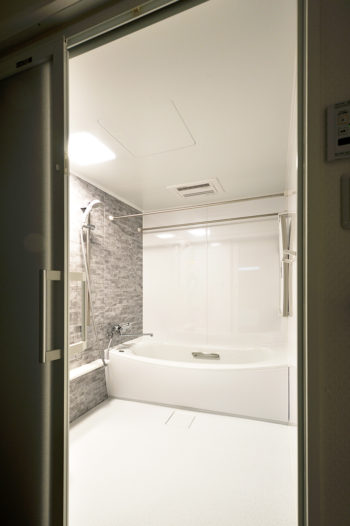 洗面化粧室とフラットにつなぎ、大きく開口できる3枚引き戸を採用するなど、安全性と快適性を追求しています。