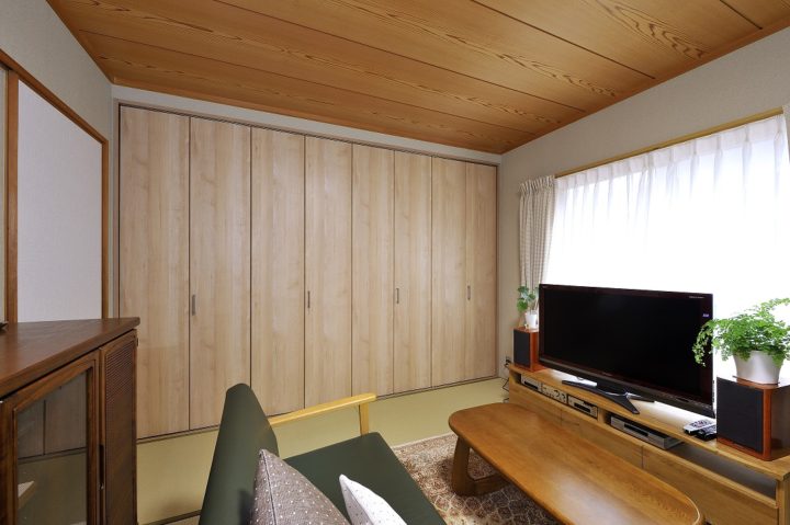 【和室】和室部分はご両親の寝室スペースに。床の間をなくし、収納を充実させました。 クローゼット建具:ベリティス/Panasonic