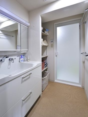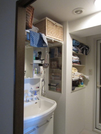 【洗面室】洗面台の下の収納が開き扉の場合、収納があまり出来ません。