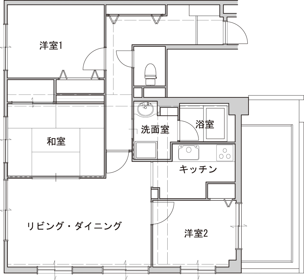 | 施工箇所 | 間取変更、設備取替(キッチン、ユニットバス、洗面化粧台)、内装工事等 |
