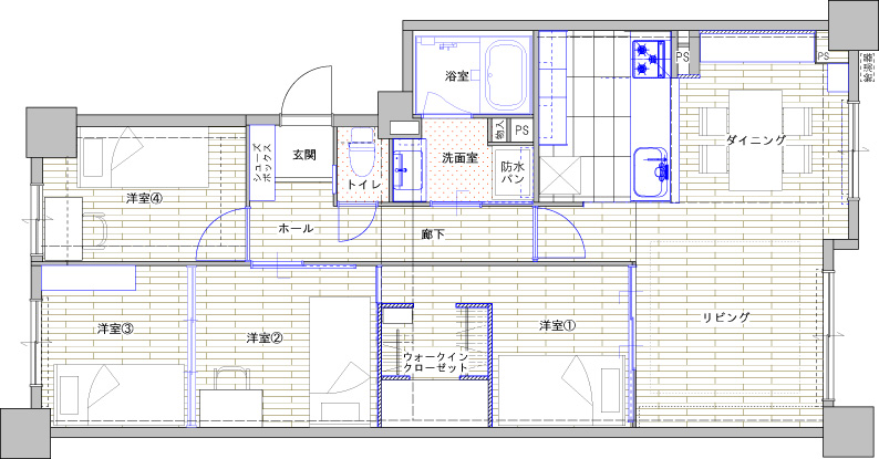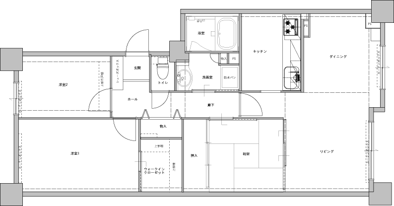 | お客様のご要望 | 子どもさんの成長に伴い、落ち着いて勉強できる個々の空間が必要になった為3LDKを4LDKにしたい。 部屋は区切っても、できれば日中は家の中に風を通したい。 ご主人様のお帰りが遅く、ご帰宅後もお仕事をされることもあり、落ち着いてお仕事が出来る空間と、音や光に敏感なご主人様が短時間でもしっかり安眠が取れるようにしたい。お子様の成長による生活スタイルの変化に応じた空間にしたい。経年劣化による水廻りや床の老朽化。 |