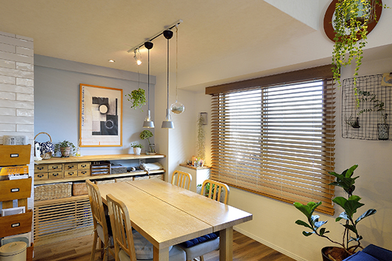 【ダイニング】見せる収納と隠す収納と、素材や色・質感にもこだわってオシャレな空間をプランニング。
