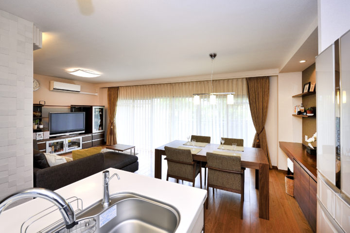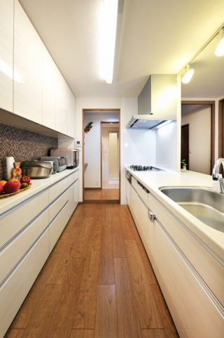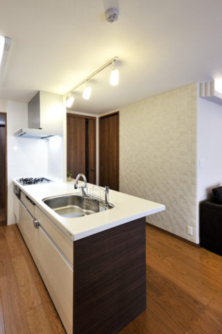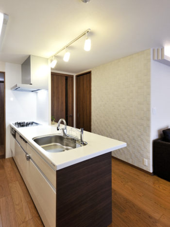 独立キッチンを移動し、家族の会話が弾むオープンスタイルに変更しました。