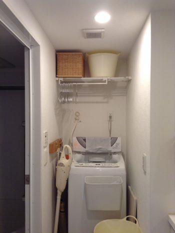 【洗面室】お気に入りのストライプクロスで、お洒落な洗面室に。