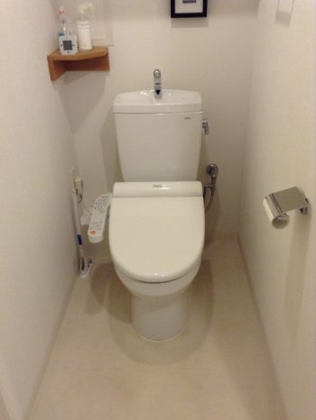 【トイレ】幅が大きいストライプ柄の壁紙なので、すっきりまとまった雰囲気になりました。
