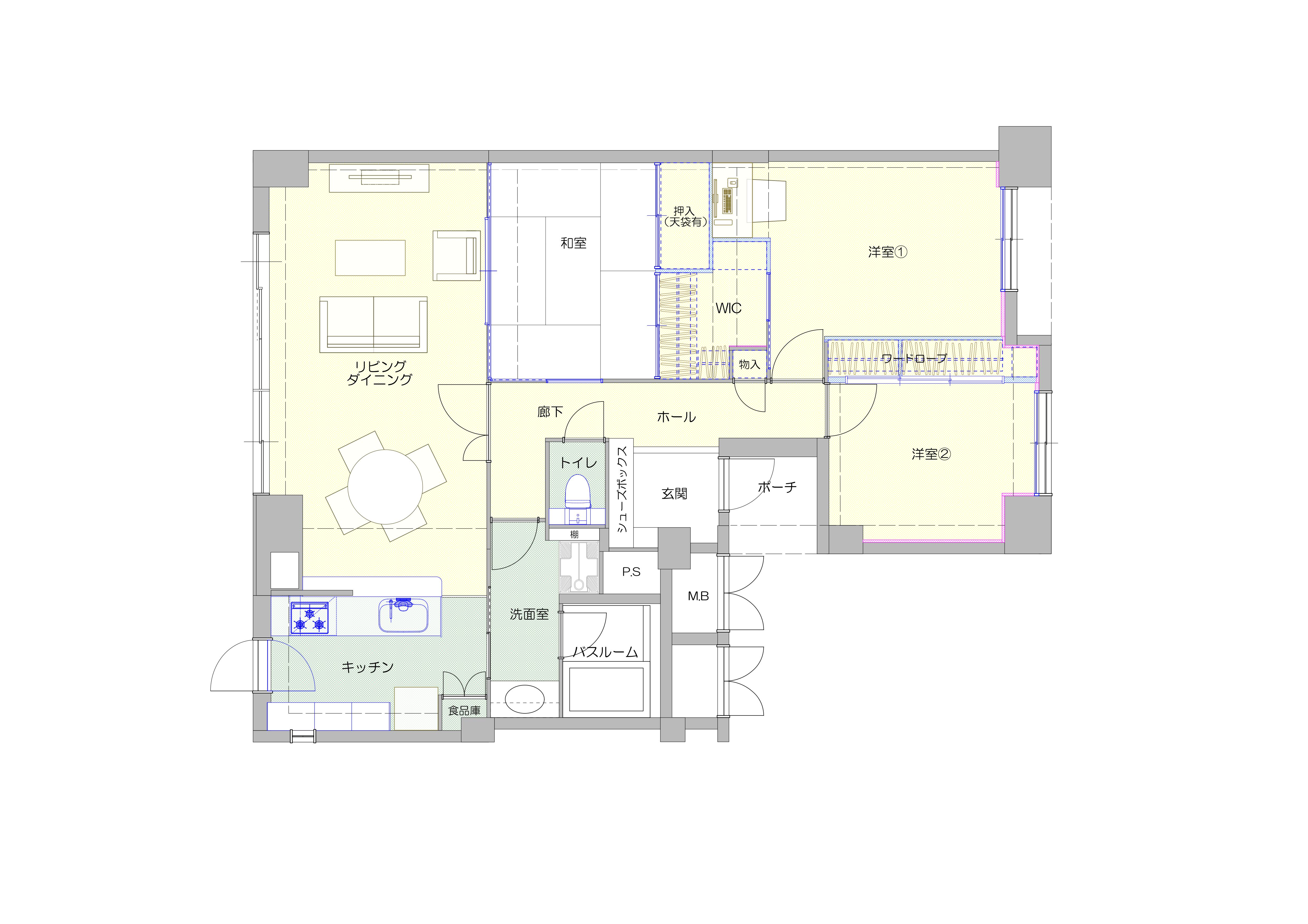 | お客様のご要望 | 収納スペースが不十分で、入りきらない荷物が、少し広い和室に置かれていました。長い間いつかリフォームをとご検討されており、内装も自分好みにこだわりたいとの事でした。 |