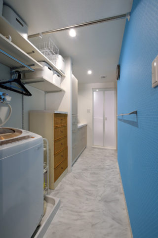 しまいやすく、取出しやすいシステムです。鮮やかなブルーのアクセントクロスで、一日の始まりをさわやかに!