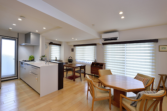 | お客様のご要望 | 仕事の都合で数年離れていた自宅にリタイア後戻られるにあたり、セカンドステージに相応しい間取り・設備等にリフォームしたいとご相談に。 まずはシンプルな美しい部屋である事、風の通る生活動線の良い空間である事をご希望。孤立感のあるキッチンや暗い和室も改善したい。 |