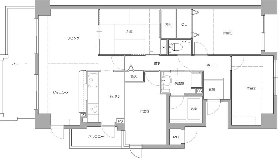 【LDK】使い勝手の悪かった和室をなくしてLDKに取り込みました。
