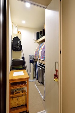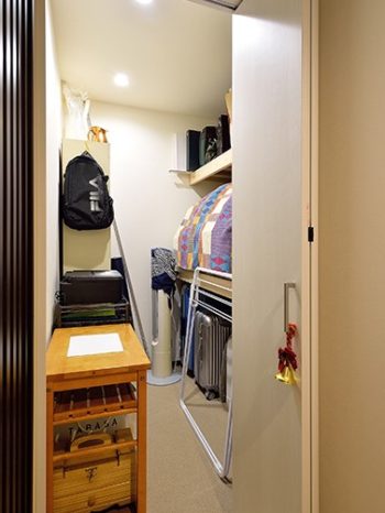 【ウォークインクローゼット】必要な大きさの収納スペースを確保する事で、しっかりと片付きすっきりとした住まいに。