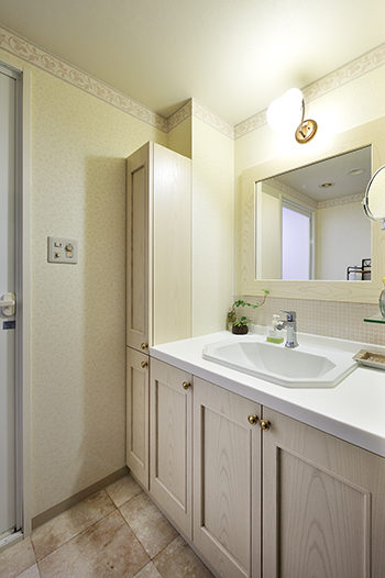 | お客様のご要望 | ごく一般的な既製品で、古びた印象になっていた洗面化粧台を変更したいというご希望をお持ちでした。 |