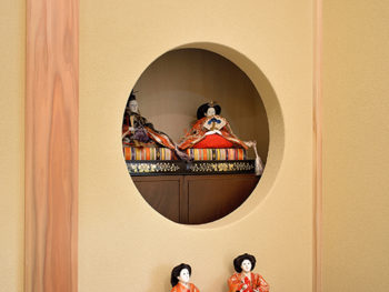 [円窓]押入れの段差を利用し、飾り棚を造作。内部には小棚を設け、季節の飾りなどに活用。
